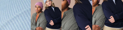 - 1 x 1 flat knit collar and cuffs with contrast tipping