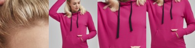 - Double fabric good with single jersey back neck tape and self coloured flat drawcord