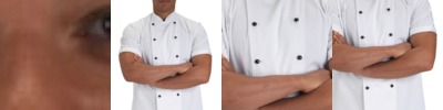 - Quality lightweight short sleeve chef's jacket with 10 removable black plastic studs