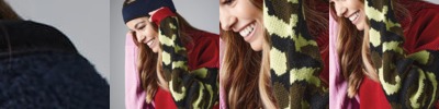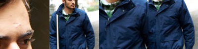 - Contrast piping down raglans and across pocket tops