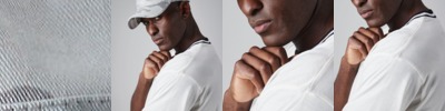 - One piece Cotton/Lycra® neck with shoulder to shoulder taping